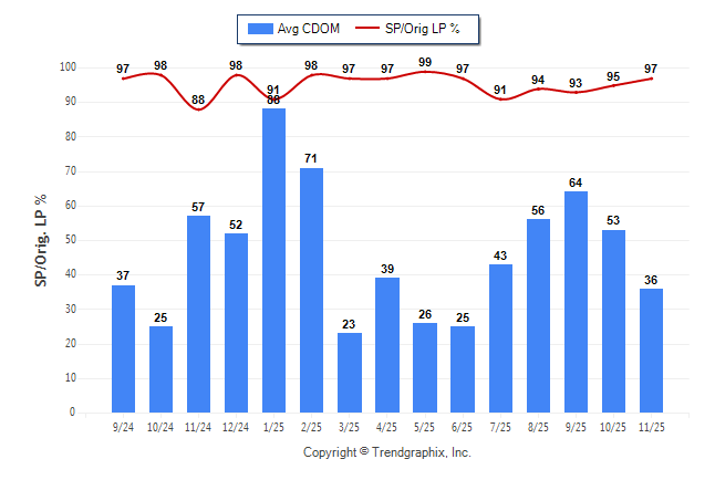 November 2025 Average Continuous Days on Market trend Remains Steady and Sold/Original List Price Ratio was Rising**