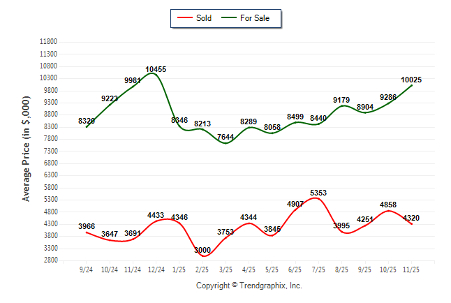 November 2025 Average For Sale Price was Appreciating and Average Sold Price was Neutral**