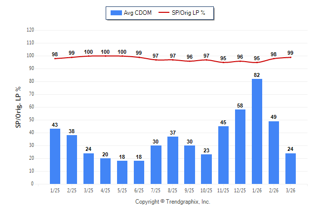 March 2026 Average Continuous Days on Market trend Remains Steady and Sold/Original List Price Ratio was Rising**