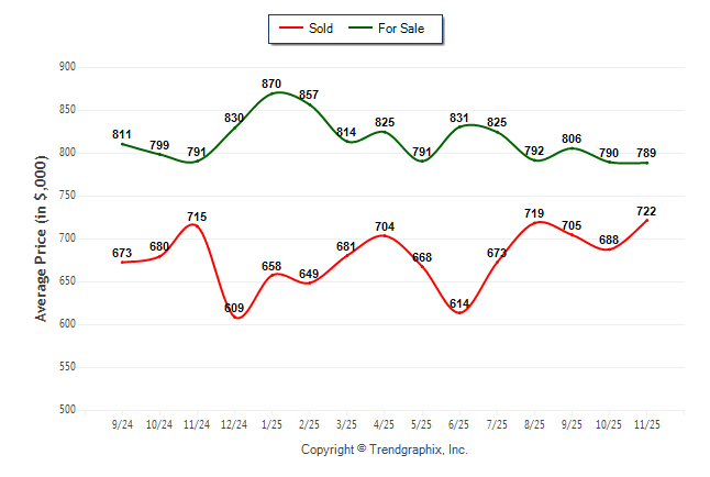 November 2025 Average For Sale Price was Depreciating and Average Sold Price was Appreciating**