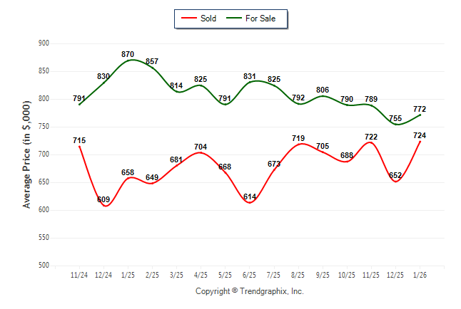 January 2026 Average For Sale Price was Neutral and Average Sold Price was Neutral**