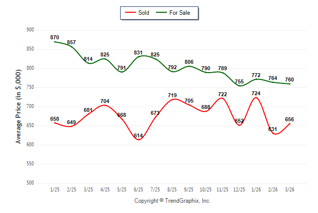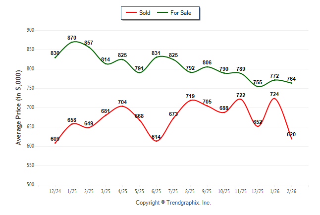February 2026 Average For Sale Price was Neutral and Average Sold Price was Depreciating**