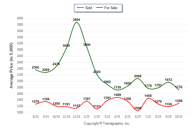October 2025 Average For Sale Price was Depreciating and Average Sold Price was Neutral**