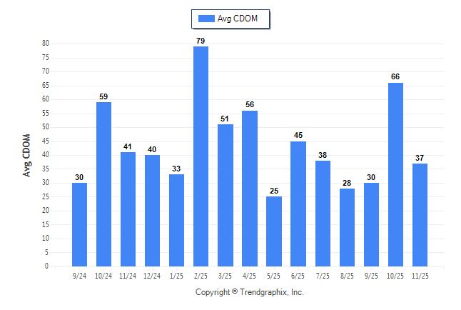November 2025 Average Continuous Days on Market trend Remains Steady**