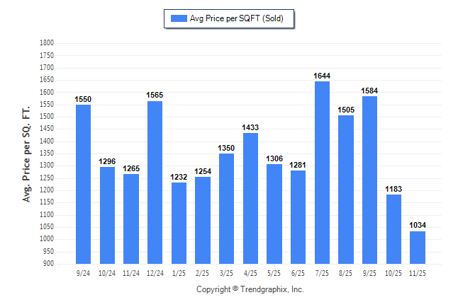November 2025 Average Sold Price per Square Footage was Depreciating**