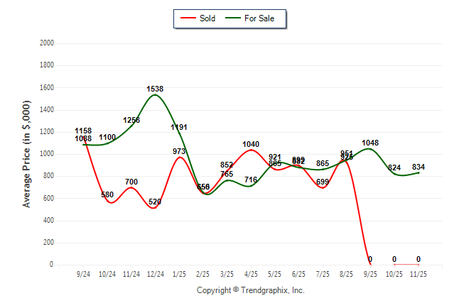November 2025 Average For Sale Price was Neutral and Average Sold Price was Depreciating**