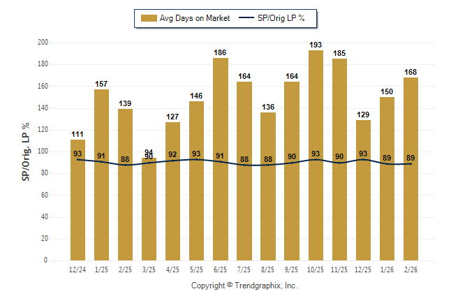 February 2026 Average Days on Market trend Remains Steady and Sold/Original List Price Ratio Remains Steady**