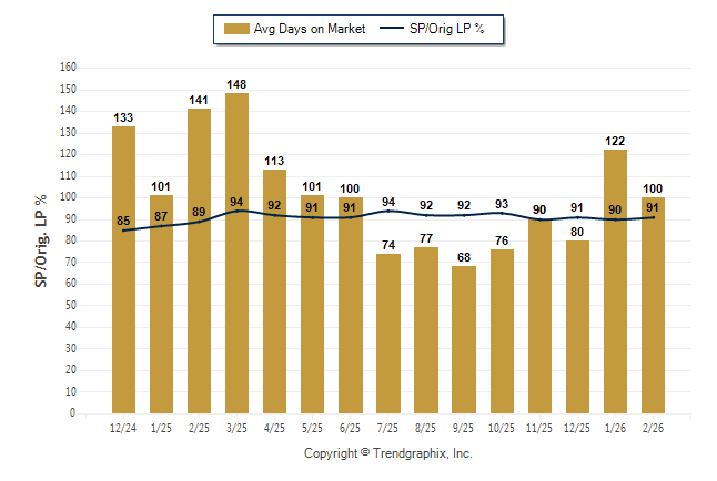February 2026 Average Days on Market trend Remains Steady and Sold/Original List Price Ratio Remains Steady**