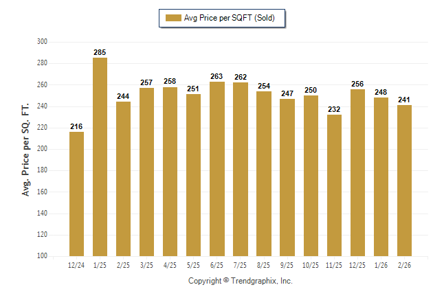 February 2026 Average Sold Price per Square Footage was Neutral**