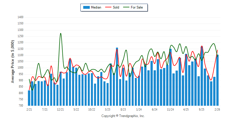 February 2026 Median Price was Neutral, Avg. For Sale Price was Neutral, and Avg. Sold Price was Neutral**
