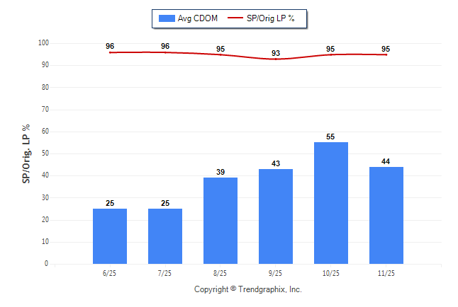 November 2025 Average Continuous Days on Market trend Remains Steady and Sold/Original List Price Ratio Remains Steady**