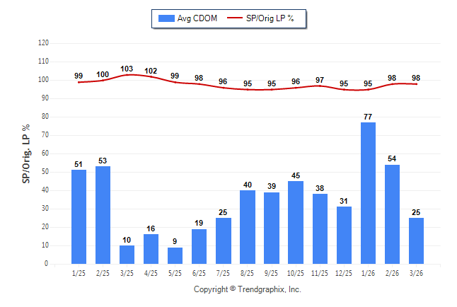 March 2026 Average Continuous Days on Market trend Remains Steady and Sold/Original List Price Ratio was Rising**