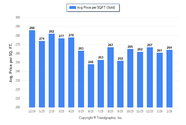 February 2026 Average Sold Price per Square Footage was Neutral**