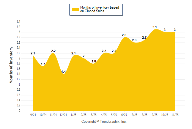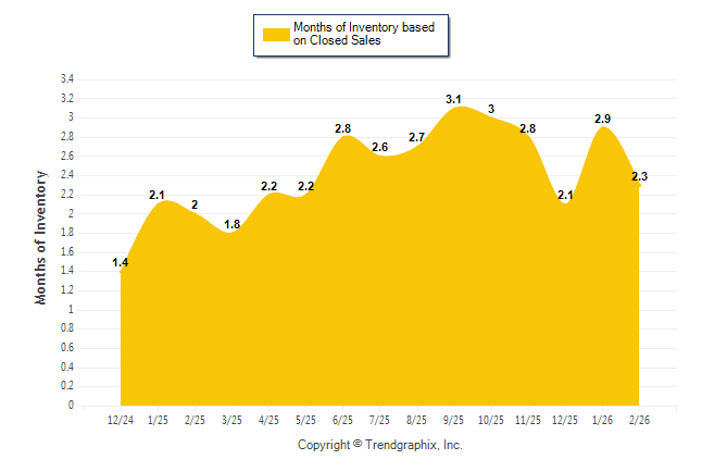 Curnt vs. Same Month 1 Yr Ago: Months of Inventory (Closed Sales)