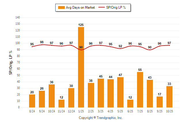 October 2025 Average Days on Market trend Remains Steady and Sold/Original List Price Ratio Remains Steady**