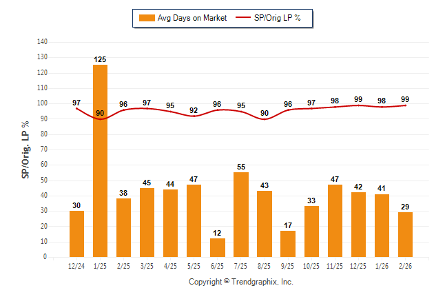 February 2026 Average Days on Market trend Remains Steady and Sold/Original List Price Ratio was Rising**