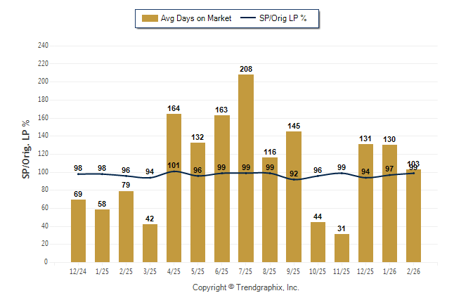 February 2026 Average Days on Market trend Remains Steady and Sold/Original List Price Ratio was Rising**