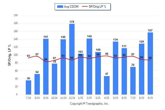 September 2025 Average Continuous Days on Market trend was Rising and Sold/Original List Price Ratio was Falling**