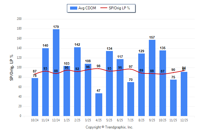 December 2025 Average Continuous Days on Market trend Remains Steady and Sold/Original List Price Ratio Remains Steady**