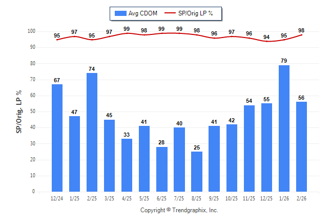 February 2026 Average Continuous Days on Market trend Remains Steady and Sold/Original List Price Ratio Remains Steady**