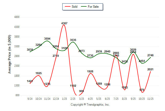 November 2025 Average For Sale Price was Neutral and Average Sold Price was Neutral**