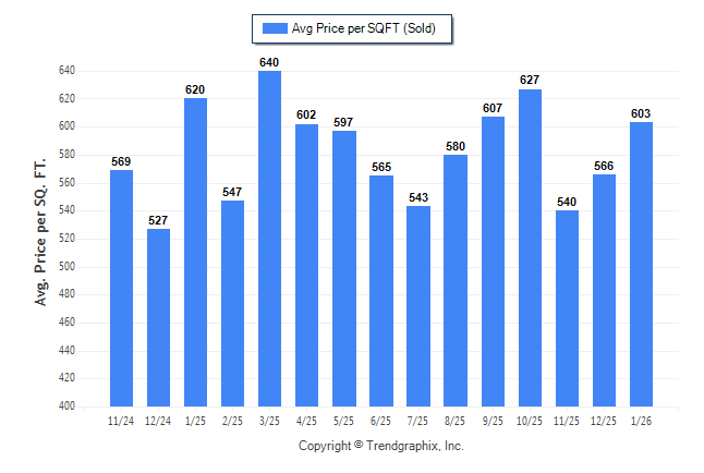 January 2026 Average Sold Price per Square Footage was Neutral**