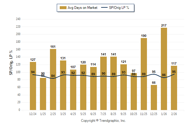 February 2026 Average Days on Market trend Remains Steady and Sold/Original List Price Ratio was Rising**