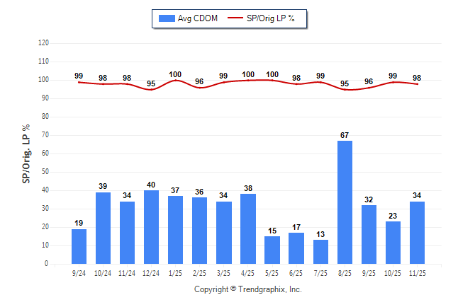 November 2025 Average Continuous Days on Market trend Remains Steady and Sold/Original List Price Ratio Remains Steady**
