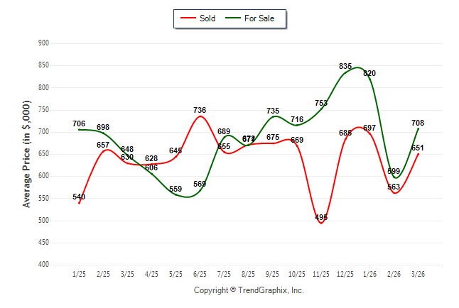 March 2026 Average For Sale Price was Neutral and Average Sold Price was Neutral**