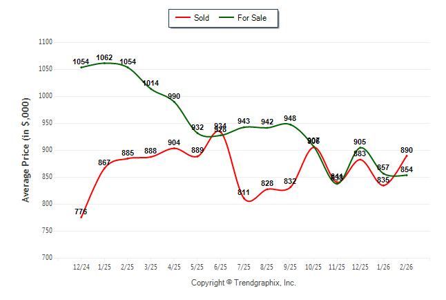 February 2026 Average For Sale Price was Depreciating and Average Sold Price was Appreciating**