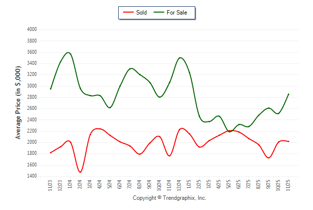November 2025 Average For Sale Price was Appreciating and Average Sold Price was Neutral**