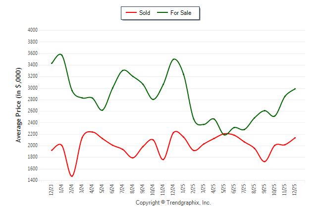December 2025 Average For Sale Price was Appreciating and Average Sold Price was Appreciating**