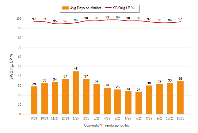 November 2025 Average Days on Market trend was Rising and Sold/Original List Price Ratio Remains Steady**