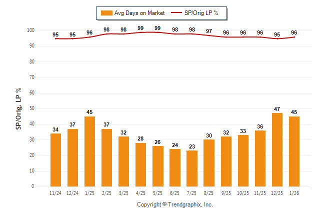 January 2026 Average Days on Market trend Remains Steady and Sold/Original List Price Ratio Remains Steady**