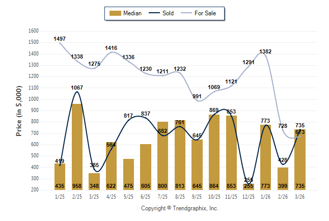 March 2026 Median Price was Neutral, Avg. For Sale Price was Depreciating, and Avg. Sold Price was Neutral**