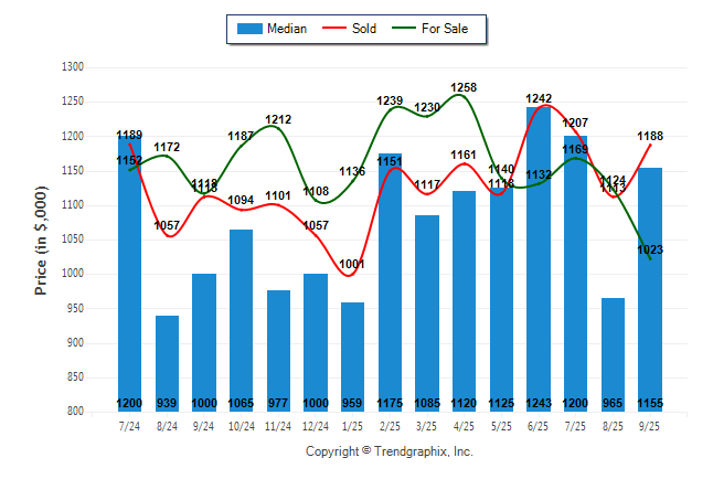 September 2025 Median Price was Neutral, Avg. For Sale Price was Depreciating, and Avg. Sold Price was Neutral**