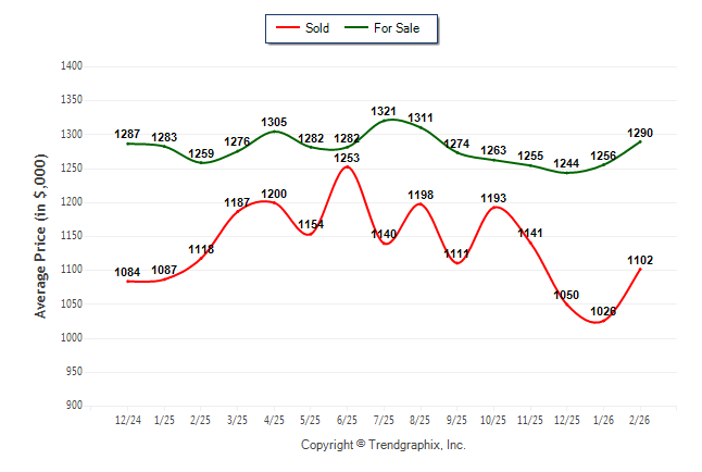 February 2026 Average For Sale Price was Neutral and Average Sold Price was Neutral**