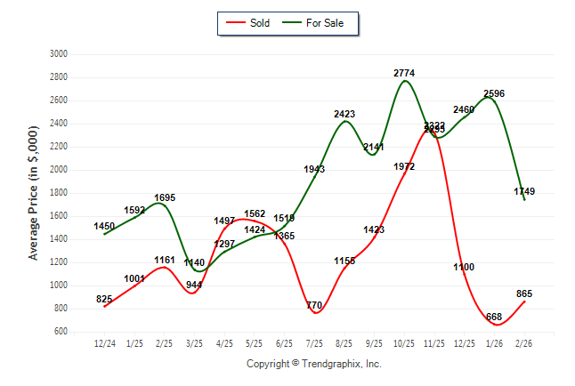 February 2026 Average For Sale Price was Depreciating and Average Sold Price was Neutral**