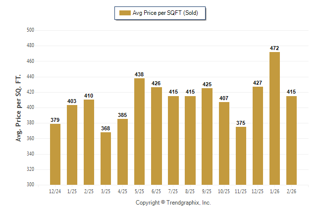 February 2026 Average Sold Price per Square Footage was Neutral**