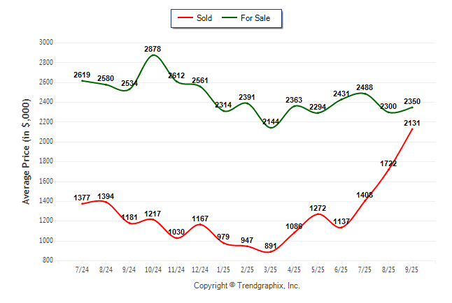 September 2025 Average For Sale Price was Neutral and Average Sold Price was Appreciating**