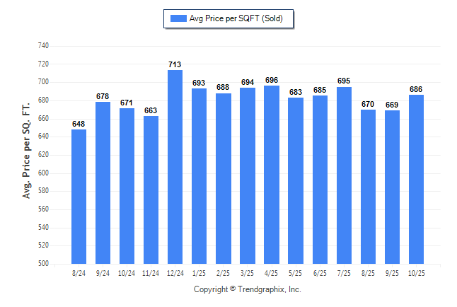 October 2025 Average Sold Price per Square Footage was Neutral**