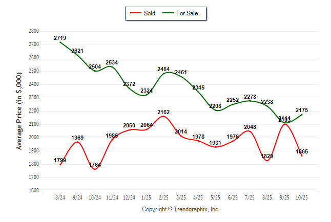 October 2025 Average For Sale Price was Neutral and Average Sold Price was Neutral**