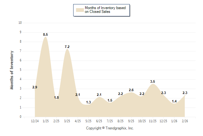 Curnt vs. Same Month 1 Yr Ago: Months of Inventory (Closed Sales)