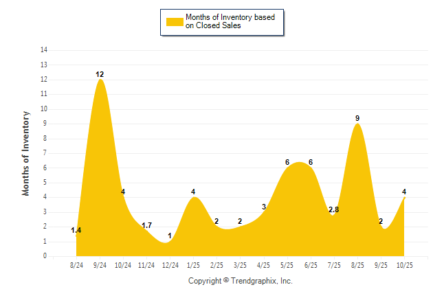 Curnt vs. Same Month 1 Yr Ago: Months of Inventory (Closed Sales) 0%