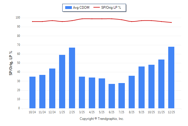 December 2025 Average Continuous Days on Market trend was Rising and Sold/Original List Price Ratio was Falling**