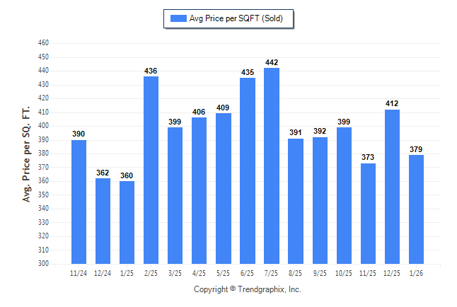 January 2026 Average Sold Price per Square Footage was Neutral**