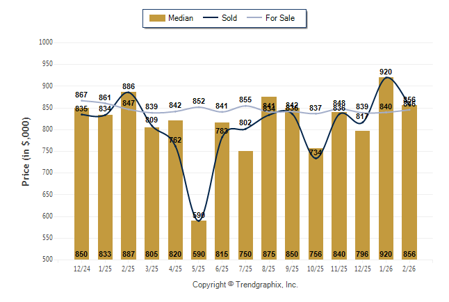 February 2026 Median Price was Neutral, Avg. For Sale Price was Neutral, and Avg. Sold Price was Neutral**