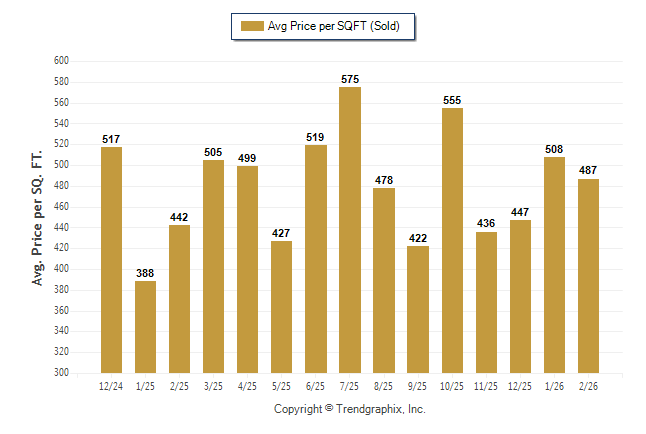 February 2026 Average Sold Price per Square Footage was Neutral**