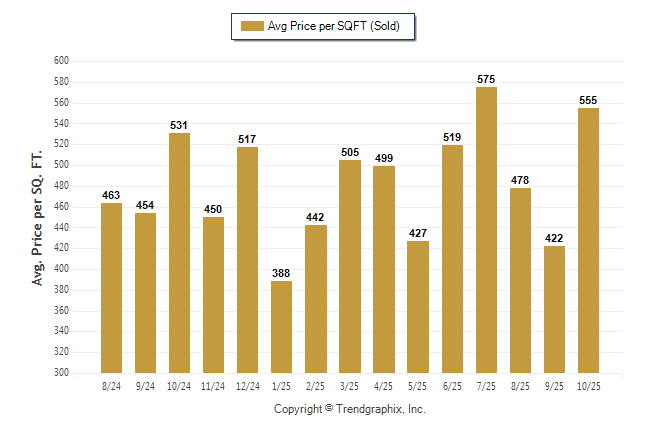 October 2025 Average Sold Price per Square Footage was Appreciating**