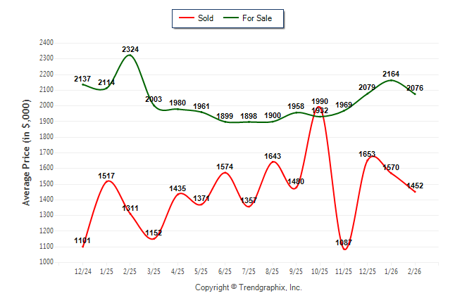 February 2026 Average For Sale Price was Neutral and Average Sold Price was Depreciating**